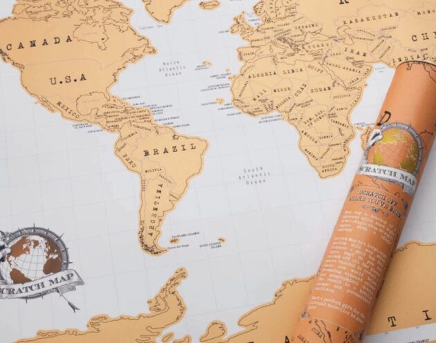 Dette flotte scratch map er en særlig måde at bevare minder om rejser. Verdenskortet kan skrabes, så man kan se hvilke lande, man har besøgt. Den perfekte gave til den berejste, eller personen som gerne vil udforske mere af verden.